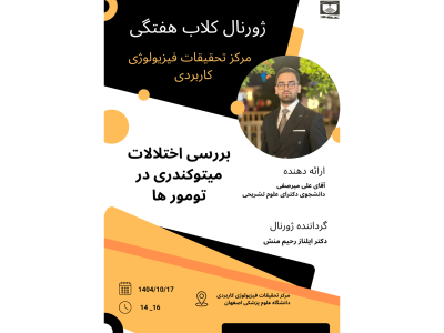 مکان برگزاری: مرکز تحقیقات فیزیولوژی کاربردی (دانشگاه علوم پزشکی اصفهان، جنب تالار شریعتی)